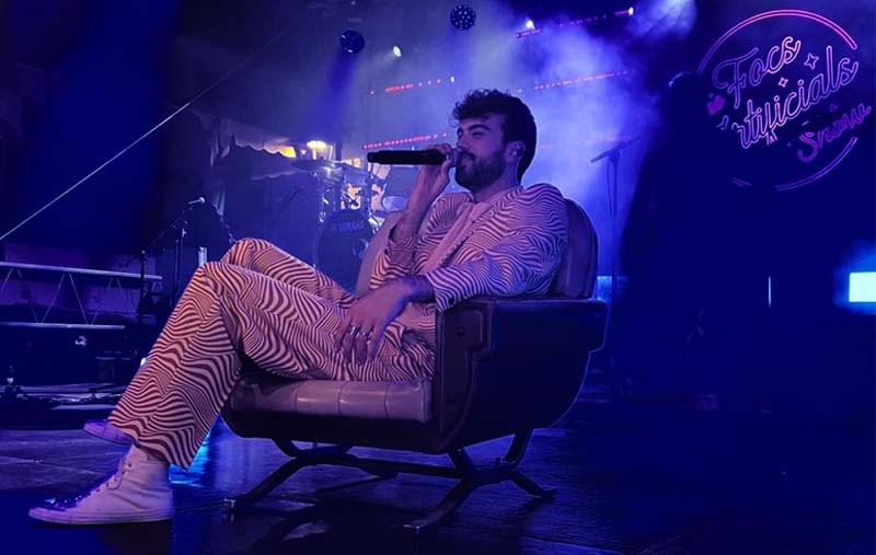 Després d’una bona estona d’espera (més de 20 minuts) pel canvi de grup, O-Erra va iniciar la seva actuació, presentant la seva gira “Focs artificials”. Una actuació sorprenent amb una posada en escena espectacular i una actuació que deixà molt bon gust de boca.