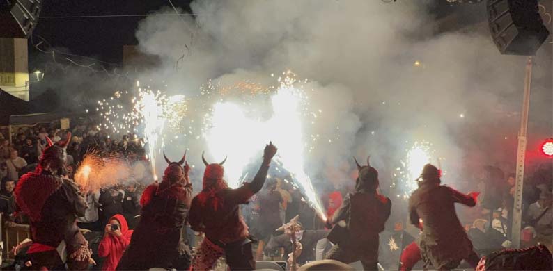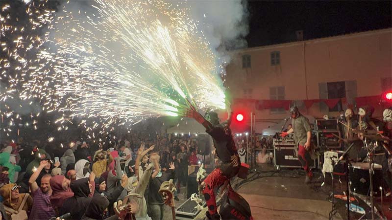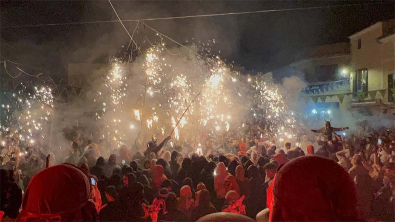 Els espectacles de nit començaren amb l’espectacle de foc de “Sa Solera Gabellina”. Els dimonis tornaren a omplir la plaça d’Es Sitjar amb foc, fum i els sons de la percussió que marca el ritme del seu espectacle.