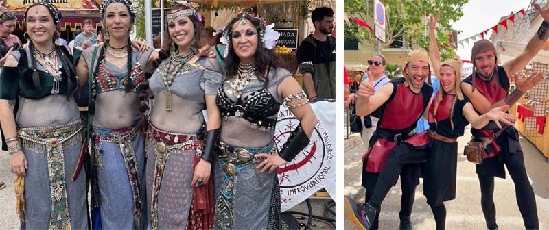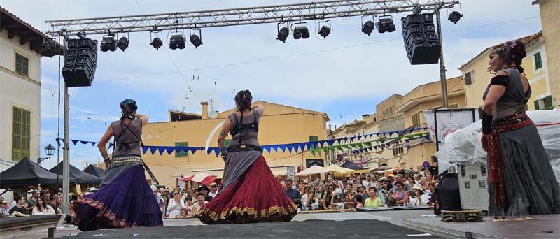 La plaça de L’Orient amb els artesans de la pauma i l’espart, la plaça de sa menjua i es Sitjar molt concorregudes i en general un ambient multitudinari i festiu, un riu humà que circulava pausadament entre les paradetes dels carrers que formen el recinte del mercat. Sensació que els espectacles es multiplicaven per onsevulla que anassis. De de qualsevol cap de cantó sortia una cercavila, senties un tambor o una xeremia sonar….Desfilades de cavallers, malabaristes, balls del ventre i, fins i tot, gegants, els nostrus.