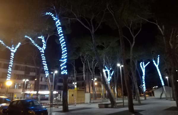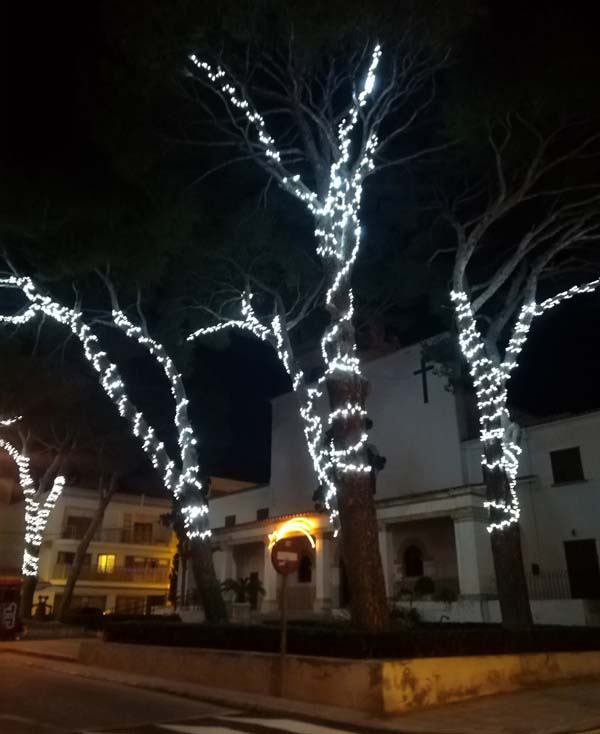 Es tracta d’una il·luminació discreta amb alguns panells decoratius nous. Ens resulten especialment bonics els enfilalls de llums que ressalten els troncs i branques dels arbres a la plaça dels Pins i la plaça de l’església de Cala Rajada.