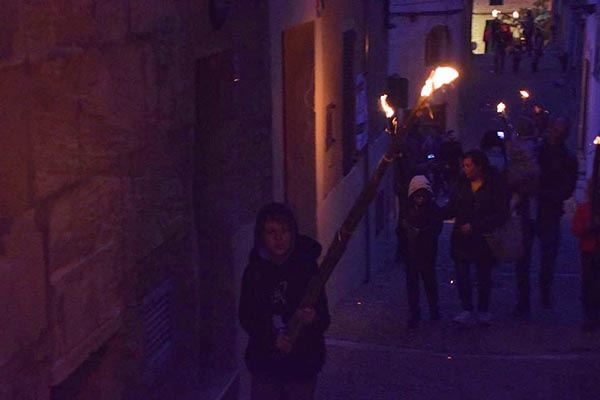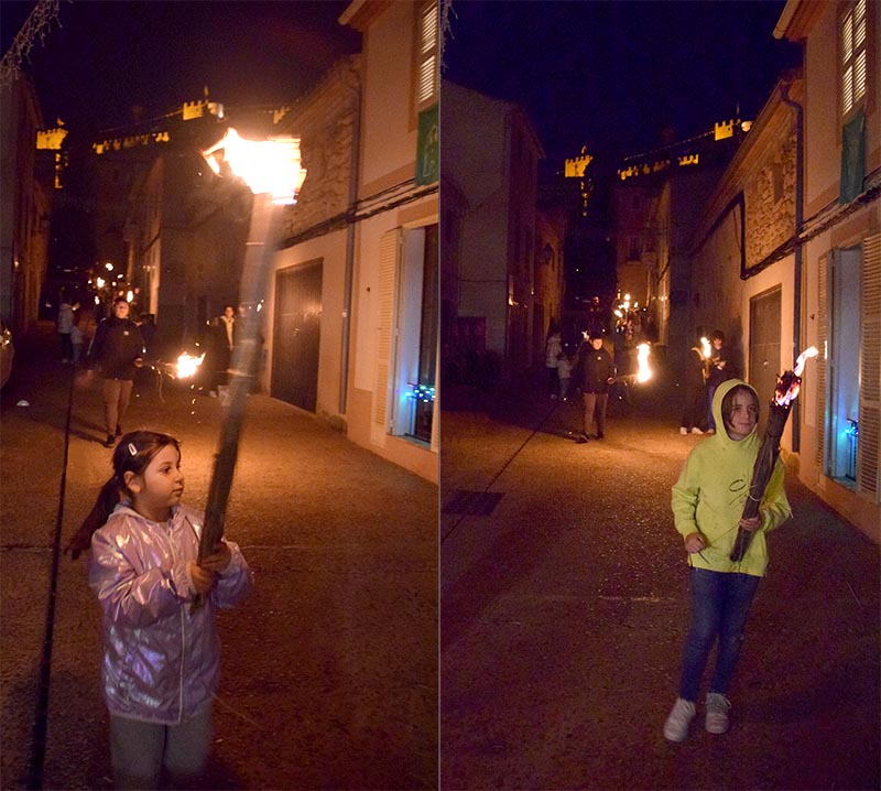 Enguany volíem partir del Castell, i allà comparegueren també un estol de nins i nines que confluïren cap al carrer fondo amb els que pujaven en una simfonia de llum entorxada mai vista. Tot just quan el crepuscle encén els estels, com diria el poeta.