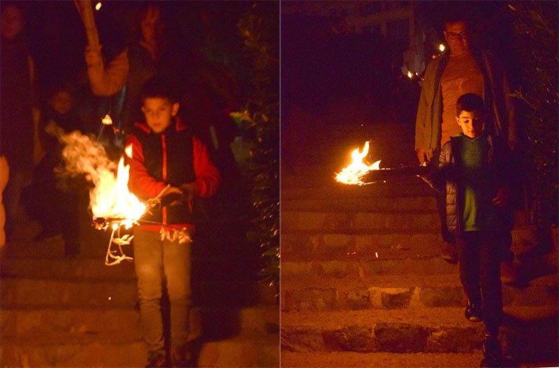 En aquest cas les imatges parlen soles. Podeu veure a les cares dels infants l’emoció temorosa de portar foc. I que al llarg del recorregut, fent camí, la confiança creixia i es manifestava en la cara, el caminar i en la manera d’agafar les faies.