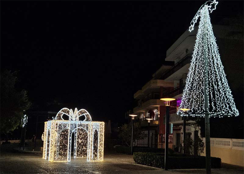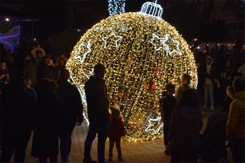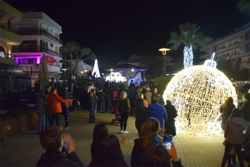 L’encesa sorprengué amb una gran bolla de Nadal i un grandiós regal. Molta gent aprofità per a fer-se fotografies amb les grans peces il·luminades, tota una sorpresa.
