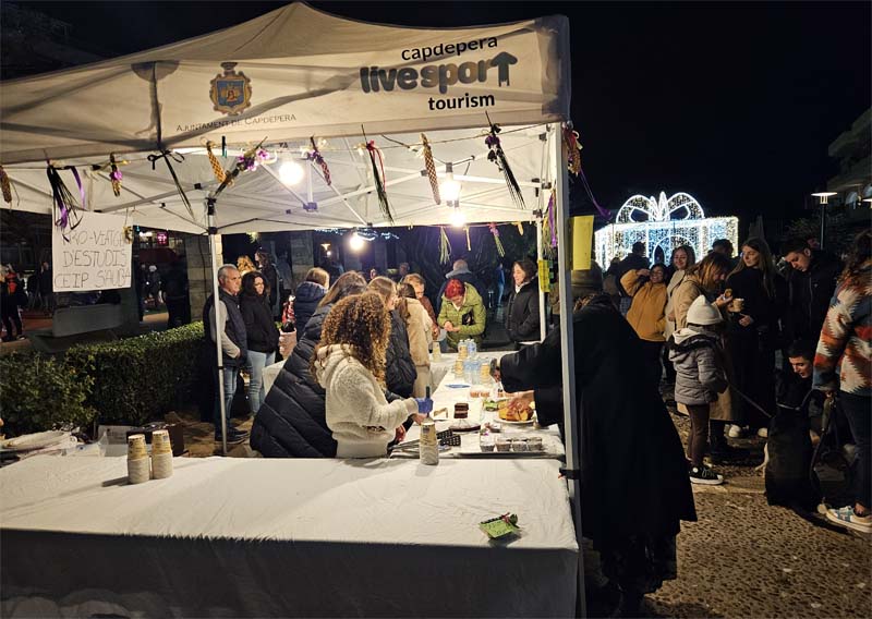 Durant tot el temps vam gaudir de la xocolata calenta i els dolços aportats per l’alumnat de 6è curs del CEIP s’Auba, per obtenir fons pel seu viatge d’estudis. Tot un encert per aportar un poc de caliu en la freda nit.