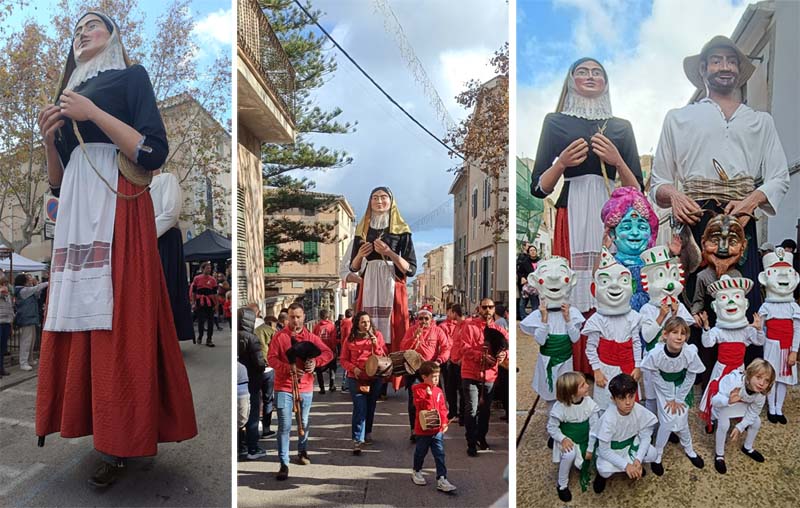 Acabats els balls a la plaça han fet un passacarrers pel carrer Col·legi, carrer Estrella, carrer des Port, carrer Curt i carrer Centre, per tornar a la plaça de l’Orient. I ja a la plaça va ploure un poc (quatre gotes mal comptades), per cert a Cala Rajada ha estat un bon ruixat. Va ser un avís perquè a al voltant de les 14,30 hores ha plogut de valent. Evidentment tots els comerciants van haver de retirar els seus productes a correcuita ja que les carpes no bastaven per aixoplugar el gènere.