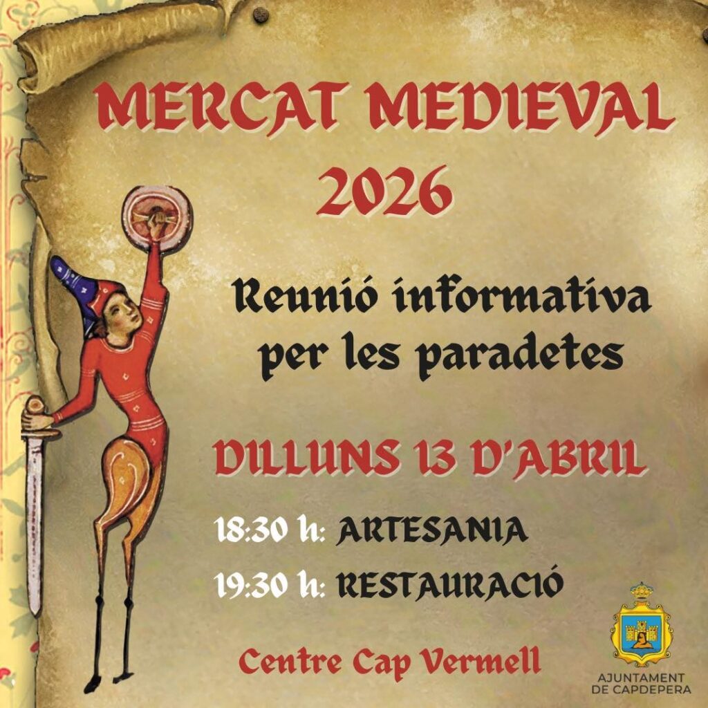 L’Ajuntament de Capdepera ha publicat la llista d’admesos i exclosos que han sol·licitat participar en el Mercat Medieval 2026. Així mateix convoca a una reunió informativa per dia 13 d’abril al Centre Cap Vermell