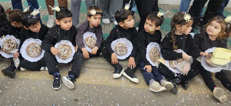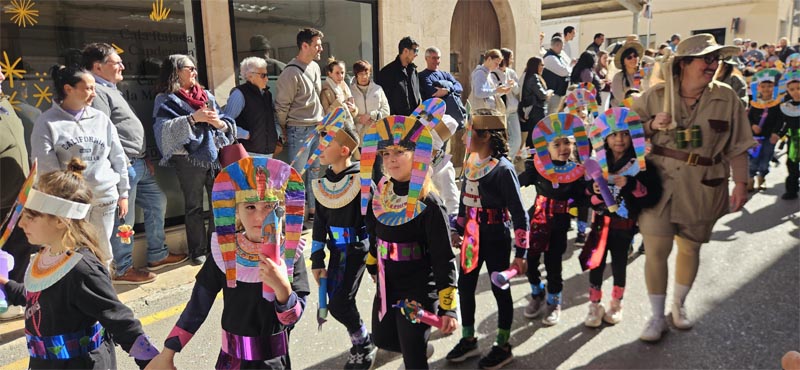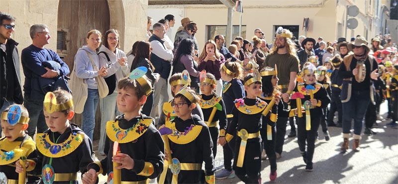 Tot seguit l’alumnat d’Educació Infantil representant els nostres avantpassats prehistòrics. Els alumnes de Primària es van disfressar d’Egipcis; Xinesos, Romans, de l’edat mitjana i de l’edat contemporània de “Charleston”. Com hem dit una desfilada ben plantosa.