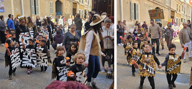 Una vegada més color, originalitat i imaginació van ser presents a la desfilada. Obrint pas els més menuts de l’escoleta Eriçons amb la seva disfressa de dinosaures de diversos colors, amb la participació de moltes mares i pres que acompanyaven disfressats als infants.