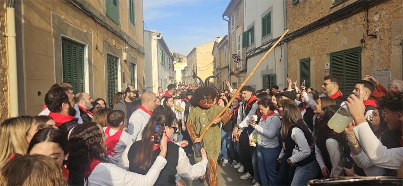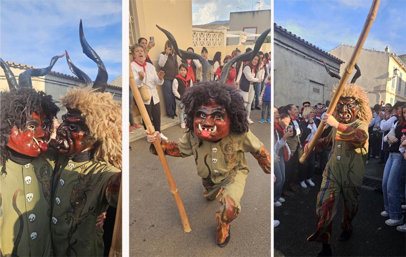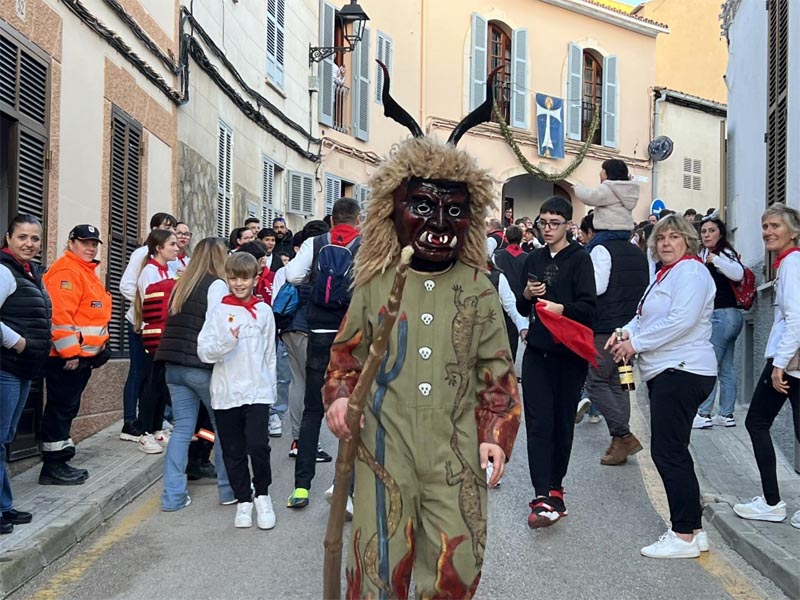 A la sortida ja fosquejava i es va fer un ball a Sa Creu per continuar la marxa pel carrer Centre cap al carrer de la Mar, on es va fer una aturada a ca l’obrer Joan Ramon i Na Bàrbara per recuperar forces. A la sortida tota la família feu rotllada i ballà amb els dimonis.