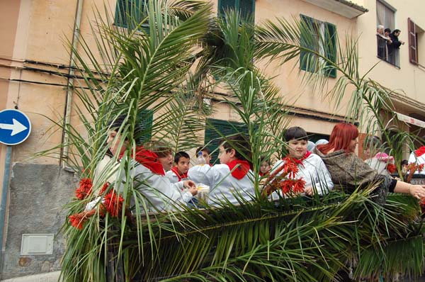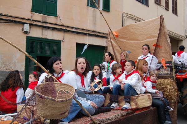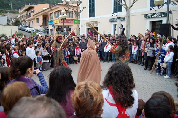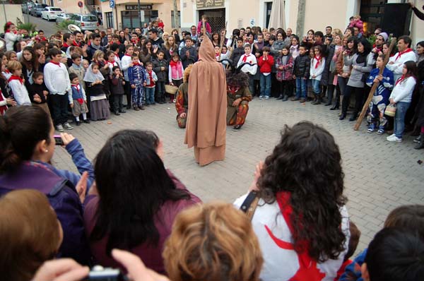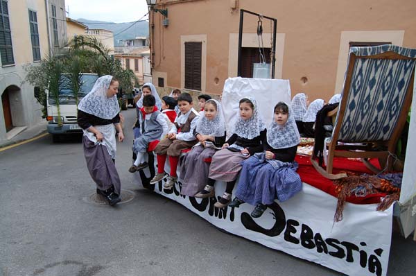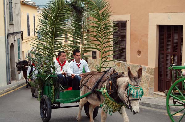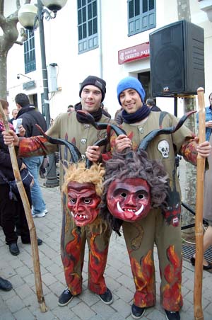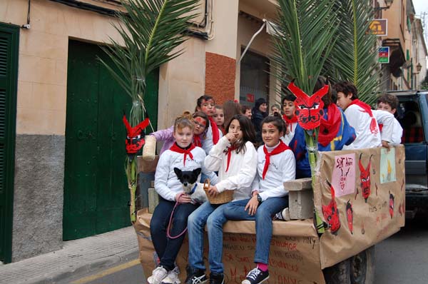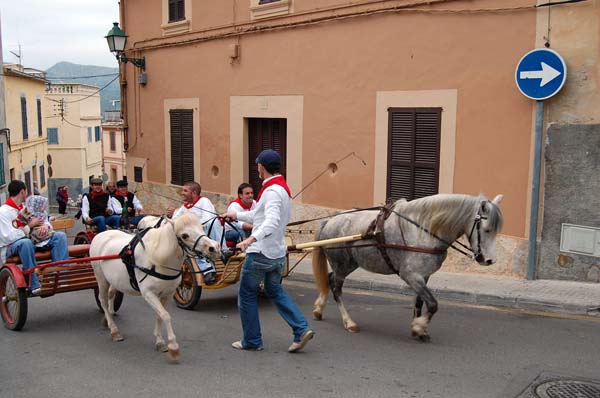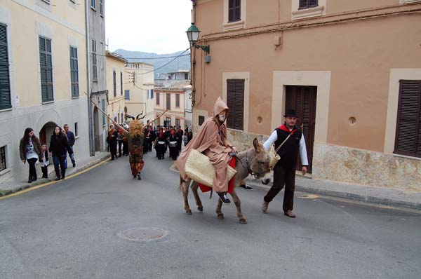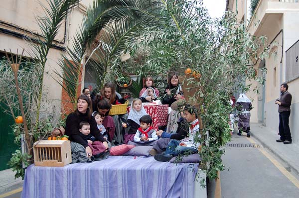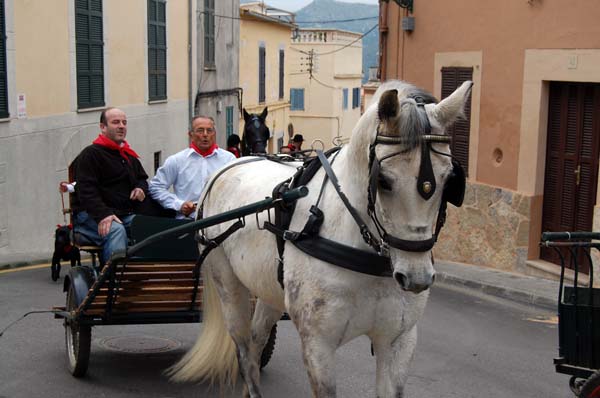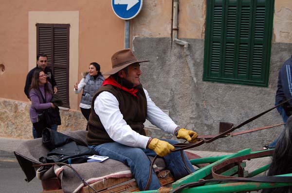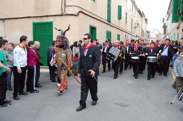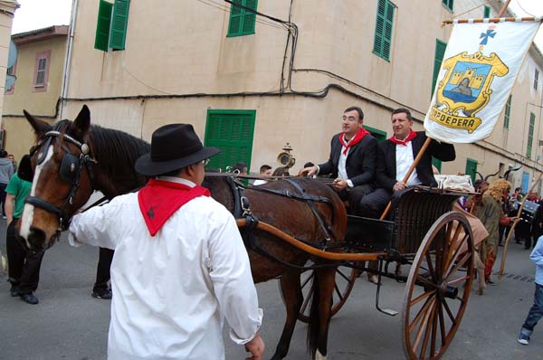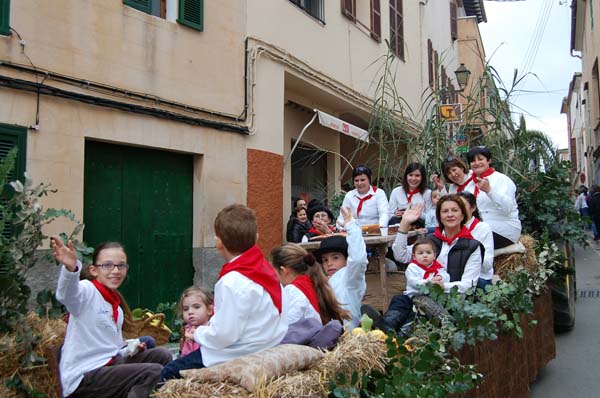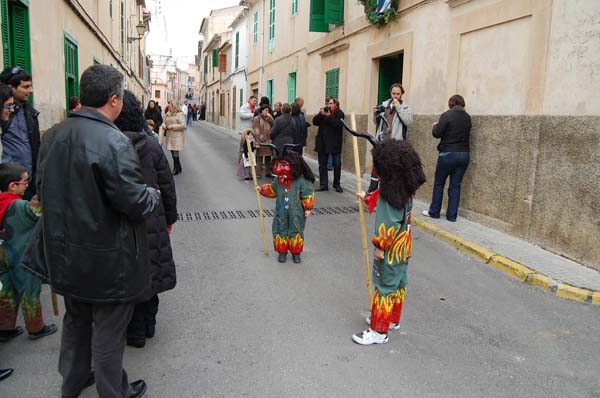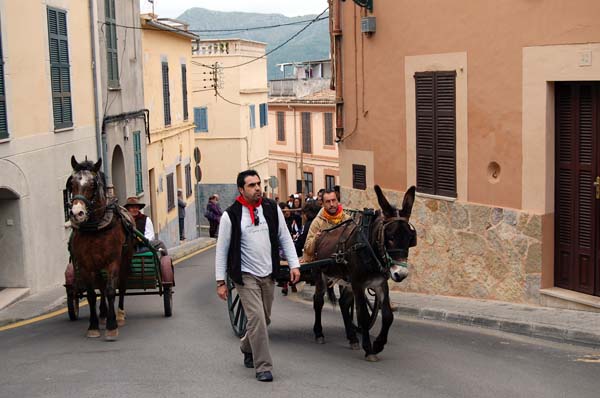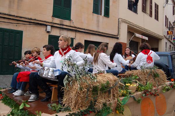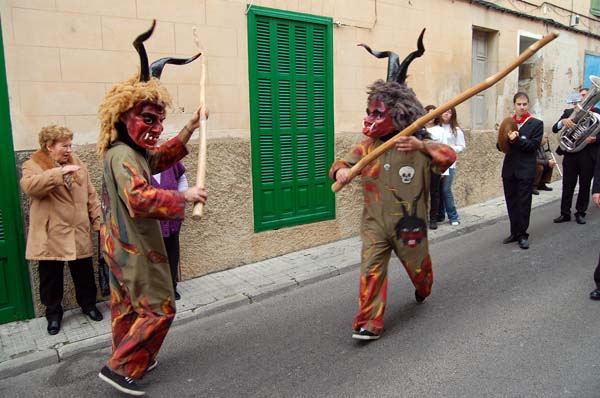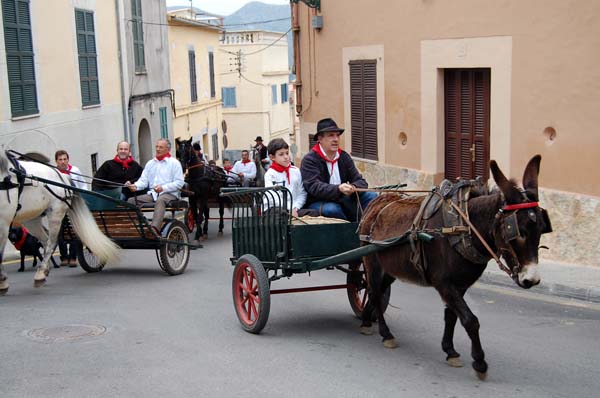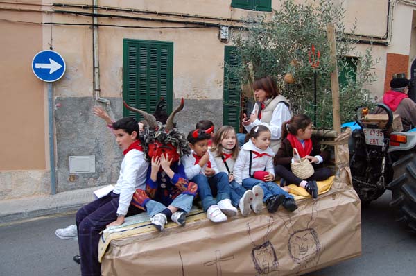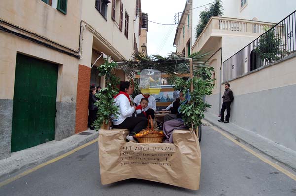 Parlàvem de puntualitat, i a les 3 del capvespre en punt els obrers majors ja estaven a punt de partida. I no hagueren d’esperar gaire, perquè immediatament es presentà la comitiva: el carro, sant Antoni, els dimonis i la banda de música. I endavant s’ha dit.