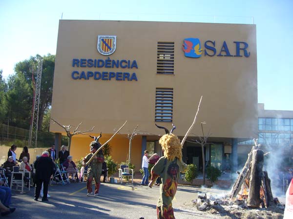 Els residents del centre varen preparar un ninot per encendre el fogueró i desprès rebérem la visita dels dimonis que ballaren al voltant d’un gran fogueró. La festa es va anar animant i molts d’aquests residents se varen aixecar i se posaren a ballar les cançons més típiques de Sant Antoni junt amb els dimonis. Desprès d’això va arribar el torn, com a tot fogueró, de la gran torrada, tots varem poder gaudir d’una bona menjada amb sobrassada, botifarró i carn, tot això acompanyat per un tassonet de vi, que una vegada a l’any no fa mal.