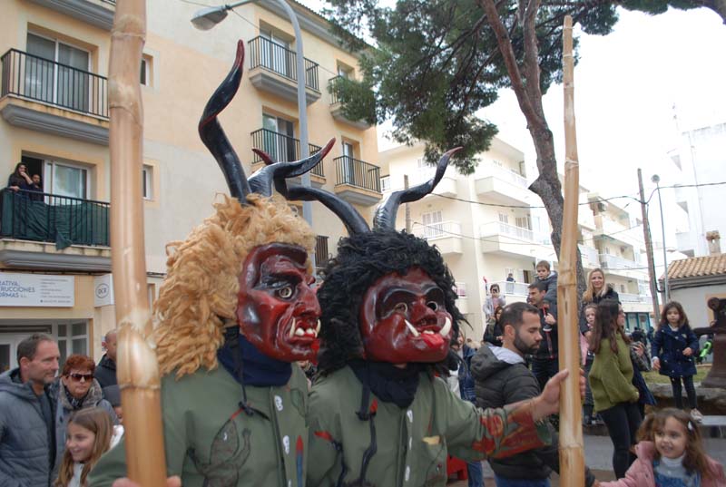 La banda no sortí, per por a fer malbé els instruments, però Sant Antoni i els dimonis foren presents a la plaça de l’església tot temps, així que qui més qui manco aprofità per a fer-se una fotografia amb els dimonis.