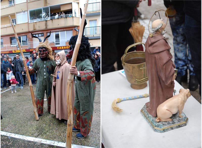 La banda no sortí, per por a fer malbé els instruments, però Sant Antoni i els dimonis foren presents a la plaça de l’església tot temps, així que qui més qui manco aprofità per a fer-se una fotografia amb els dimonis.