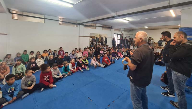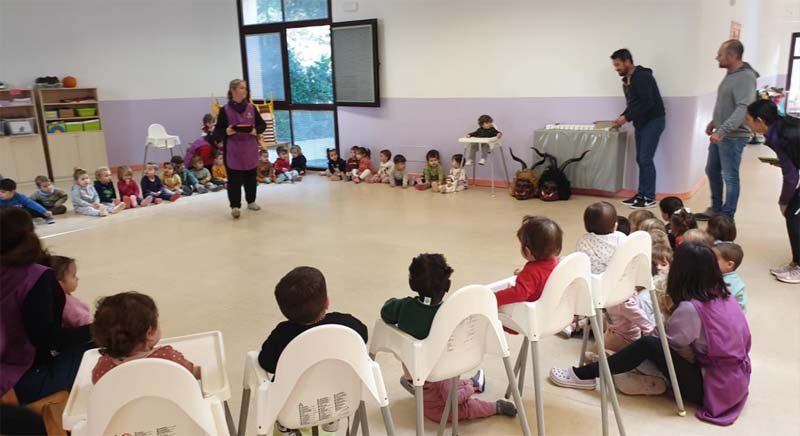 La trobada amb l’alumnat s’ha realitzat en dos torns, cada un d’ells en el gimnàs. Primer amb els alumnes d’Educació Infantil i després amb els de Primària.