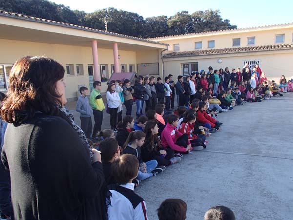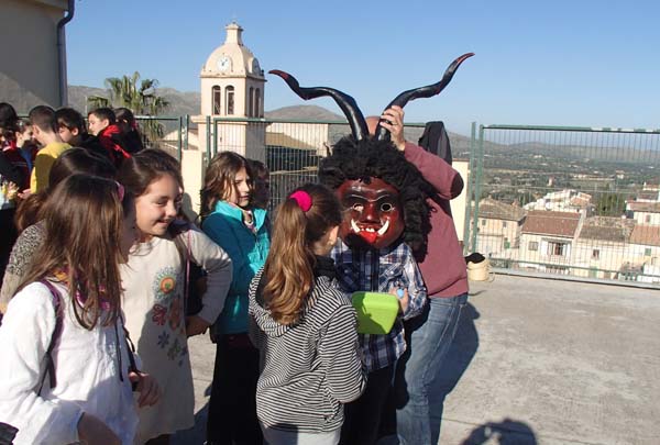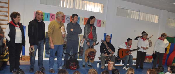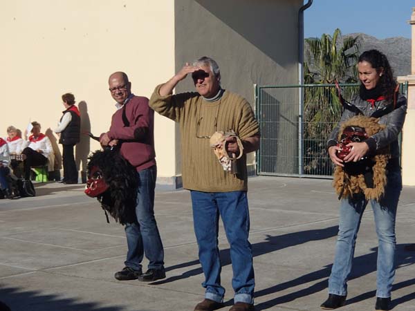 A s’Alzinar se van trobar els cursos, a partir de tercer, al pati escolar després d’escoltat als obrers van poder posar-se les caretes de dimoni (i comprovar el seu pes…) i sentir i cantar algunes cançons santantonieres amb membres de la coral gabellina i aires gabellins.