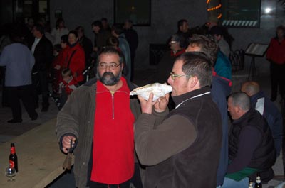 Després de la volta, i ja de tornada a la plaça, els participants foren obsequiats amb una bona xocolatada, com ja s'havia fet a Capdepera. A la fotografia es pot veure que el pandero estava en bones mans.