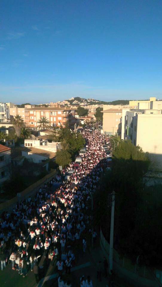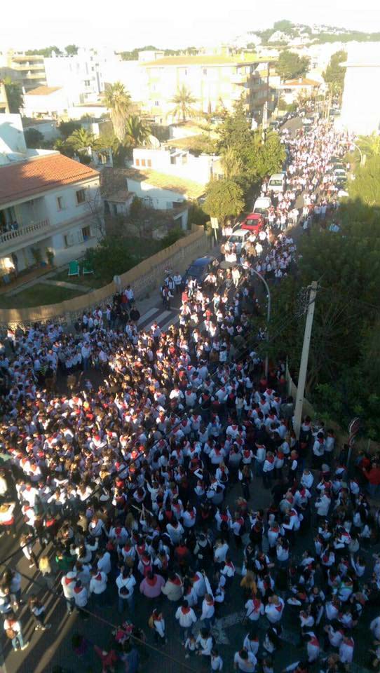 A partir d’aquest moment varen recòrrer l’itinerari previst pels carrere Elionor Servera. Magallanes, Via Mallorca, Castellet… en fí, la ruta habitual. Com hem dit tot seguit per una gentada uqe cantava i ballava visquent intensament la festa.