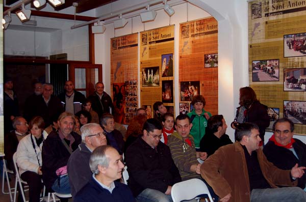 El musicòleg Francesc Vicens va oferir una interessant dissertació sobre la festa de Sant Antoni i el seu profund arrelament en els distints pobles de Mallorca. Es va referir a diversos nivells de la festa, segons les característiques de cada lloc, ja que, segons va dir, es tracta d’una celebració que, a partir d’uns elements unitaris i comuns, es manifesta distintament segons la idiosincràsia de cada poble. Es va referir igualment a la permanent evolució d’aquesta efemèride i la seva capacitat d’adaptació, a partir d’uns orígens religiosos i agraris, fins arribar a un present presidit per una economia de serveis i en què al figura dels dimonis ha anat prenent protagonisme a la de Sant Antoni. Els elements característics – cavalcades, foguerons, cançons i glosses, música… – varen ser igualment posats sobre la taula per l’autor de Diguem visca Sant Antoni.