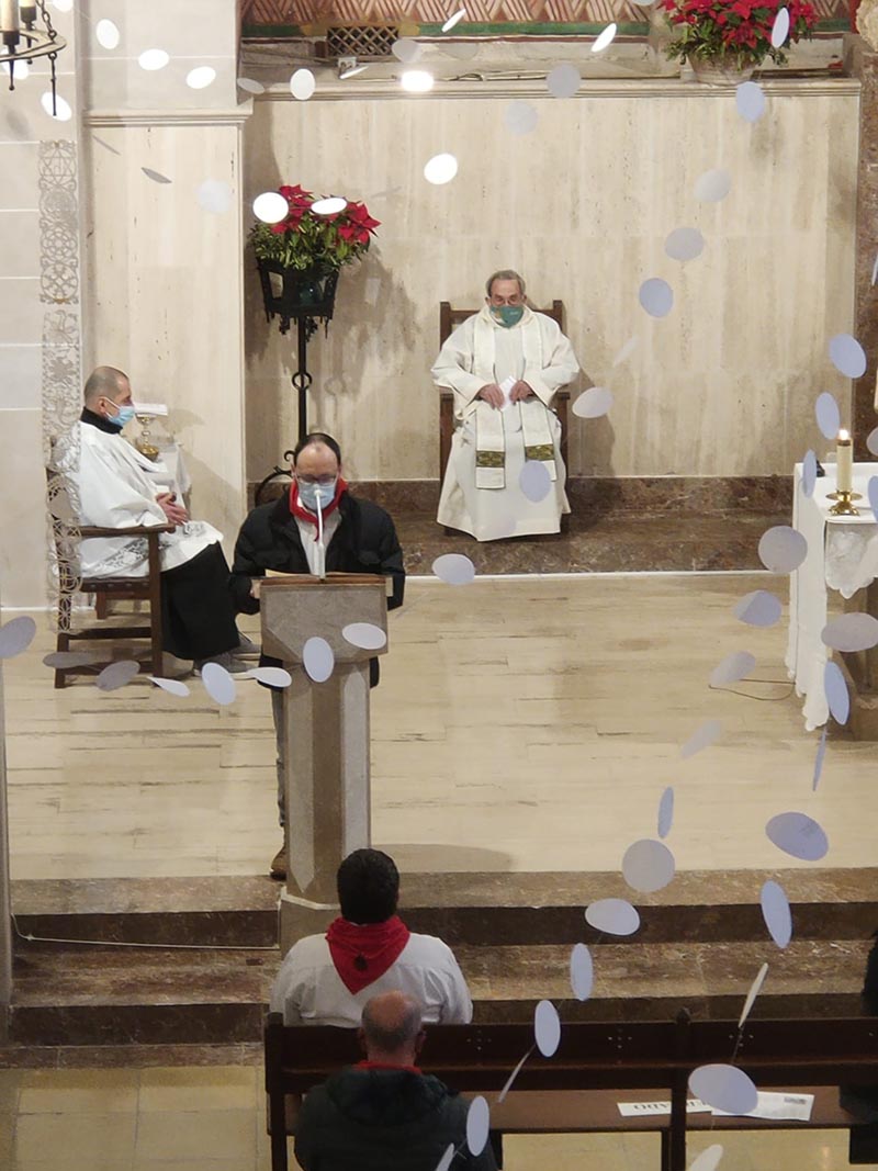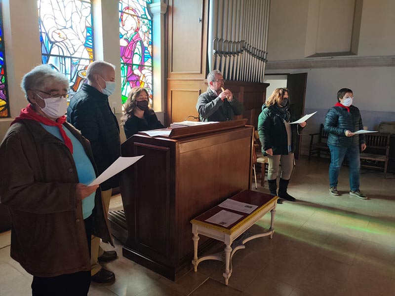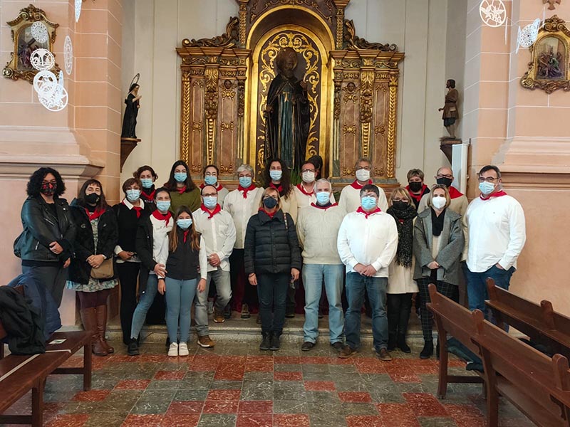 Acabada la cerimònia, i com es habitual, es cantaren les gloses de Sant Antoni des dels seients i no davant el Sant, per motius de distanciament.