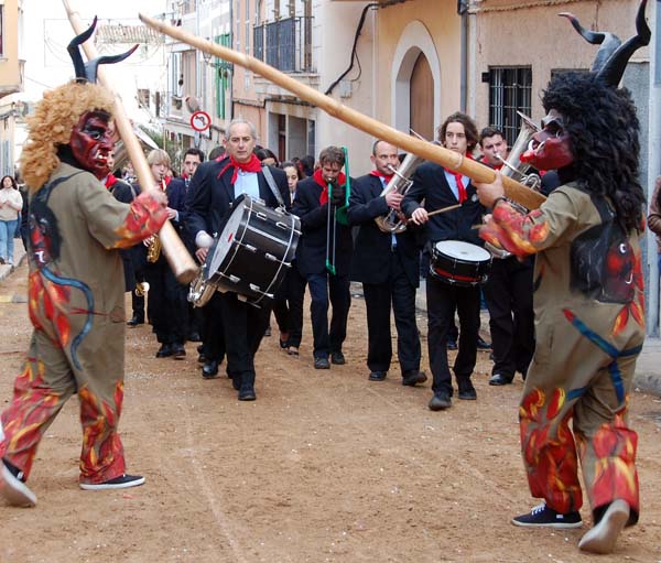 Com sempre, tot va començar -de manera molt puntual, per cert- a les 3 del capvespre, quan els dimonis, Sant Antoni i la Banda de Música anaren a cercar els obrers majors, Antoni Moll i Tomeu Colom, per tal de donar el sus oficial a la desfilada. Tot seguit, des del carrer Roses, la comitiva inicià la marxa pels carrers habituals.
