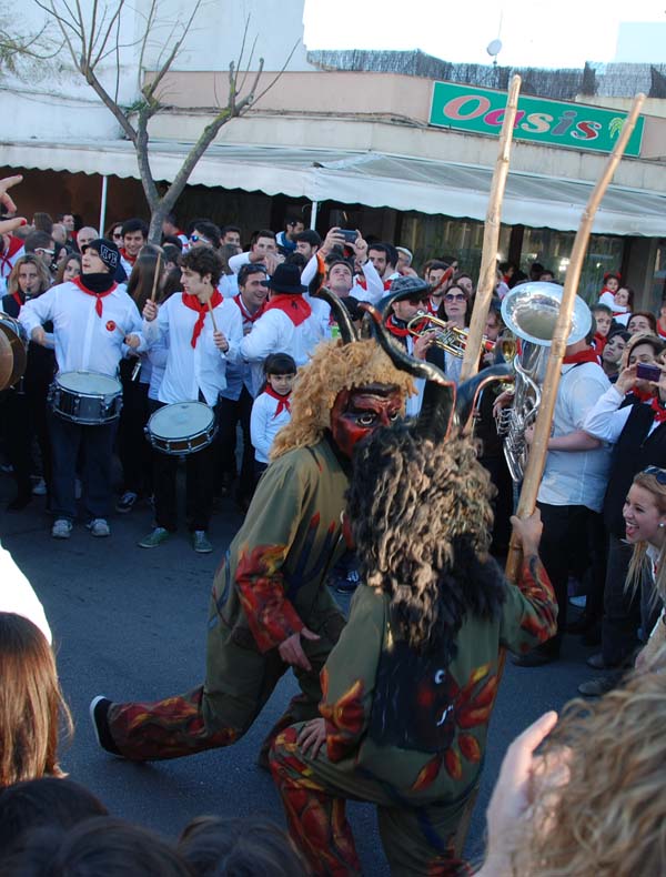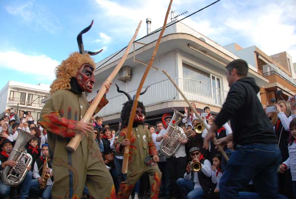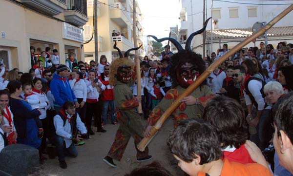Després dels rituals que agombolen més gent al voltant dels dimonis, començà el recorregut habitual pels carrers del poble, començat pel carrer Elionor Servera. Un altre moment molt esperat és la ballada dels nostres dimonis amb els d’Artà. Enguany hi va participar en Ferriol.
