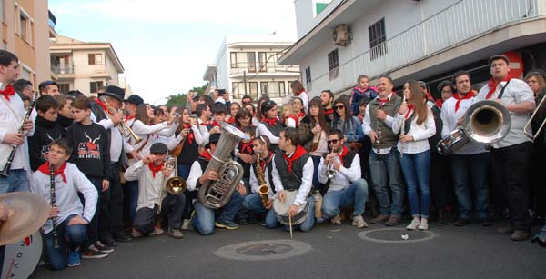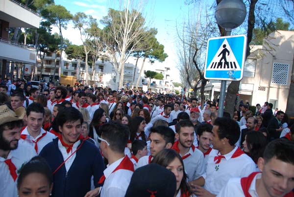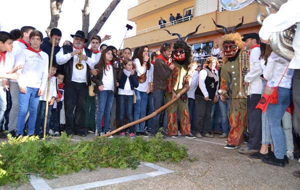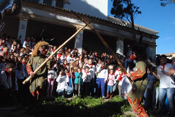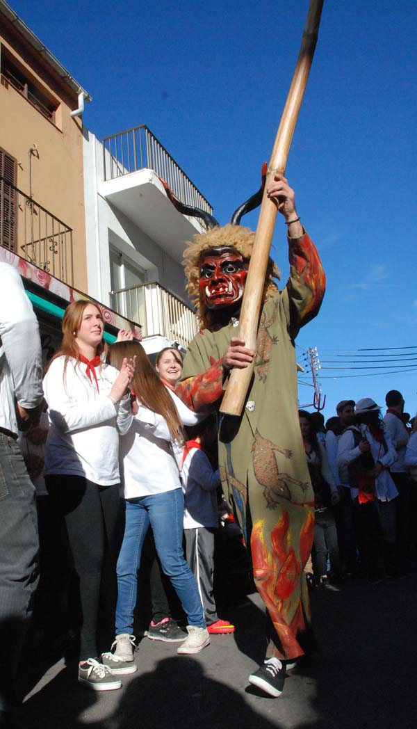 Puntualment, a les 15 hores, va sortir el dimoni de la cotxeria de can Toni “Miquelet” i es desfermà l’eufòria, amb els acords de la Banda i una gentada molt animada. Però la majoria de participants de les corregudes esperaven davant l’església per tenir un bon lloc a la trobada de dimonis i la desfeta de la creu de mata.