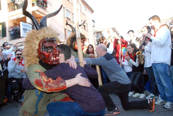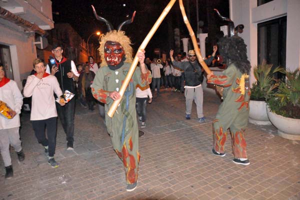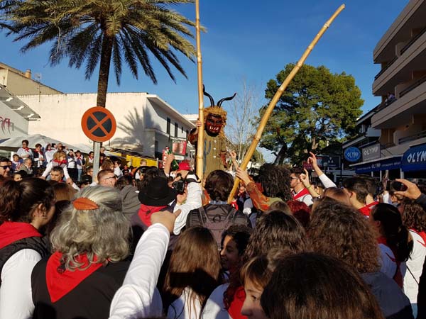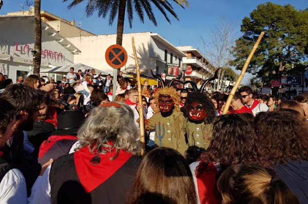 A partir d’aquí, un llarg recorregut pels carrers del poble amb algunes aturades gairebé rituals. Com ara la del carrer Castellet on, després d’una aturada per recuperar forces, els dimonis fan un ball amb els dimonis d’Artà. Enguany va ser en Mosca i el seu fill, que s’estrenà com a dimoni gran d’Artà, qui compartiren el ball amb els nostres dimonis.