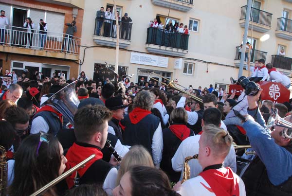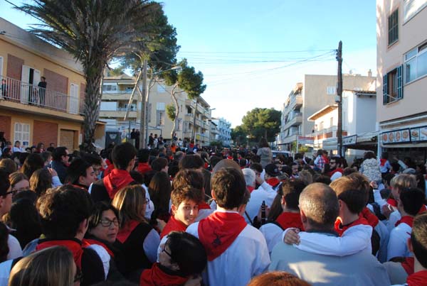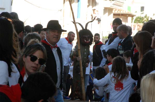 Tots recordarem la pluja i mal temps que posà a prova la celebració de Sant Antoni a Cala Rajada l’any passat. Enguany el bon temps ha estat un aliat de la festa i els carrers se van omplir de gent amb camisa blanca i mocador al coll. Acompanyat per la música de la Banda (què seria la festa sense la Banda?) , el dimoni sortí de la cotxeria de Toni Moll, on va fer el primer ball, per anar cap a la plaça de l’església on una multitud l’esperaven per a l’encontre amb el dimoni Ros. Balls i desfeta de la creu de mata.