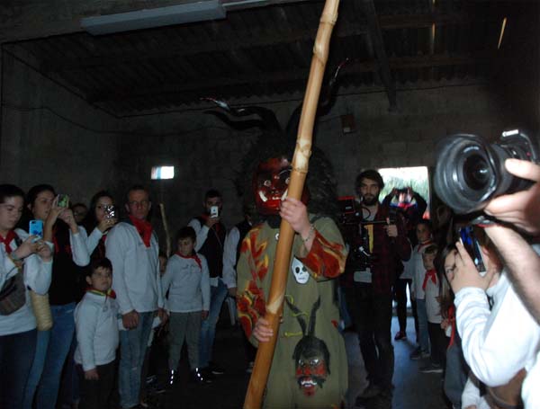 Mentre els dimonis es preparaven, creixia l’expectació dins i fora de la cotxeria, ja amb les portes tancades. Puntualment el coet marcà l’obertura de les portasses i la sortida del dimoni per a fer el primer ball i pujar a l’encontre del dimoni Ros a l’església.