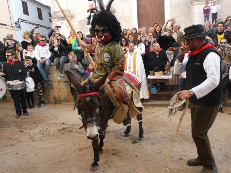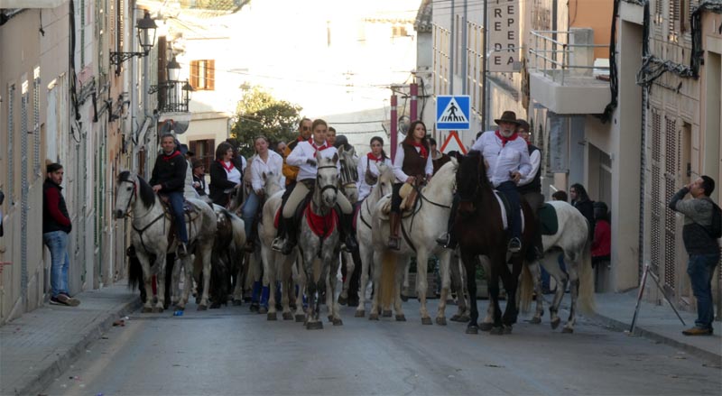 L’imatge de Sant Antoni, amb es porquet, presideix Les Beneïdes de Sant Antoni a la plaça de l’església. Després de recollir els obrers al carrer Ciutat, acompanyats de la Banda de Música, comença la cavalcada pels carrers de Capdepera.