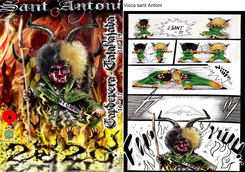 També hem de comentat el cartell de Juani Sosa. Una aposta valenta de l’Obreria que ha fugit de la clàssica imatge de moments de la festa. Com tots els canvis, a uns els ha agradat i a altres no tant. El cert és que suposa una renovació en la línia duta fins ara, i en Juani Sosa ha fet una molt bona feina amb un estil molt personal. Per cert a facebook circulava unes vinyetes de com se gestà el dimoni “bicolor”