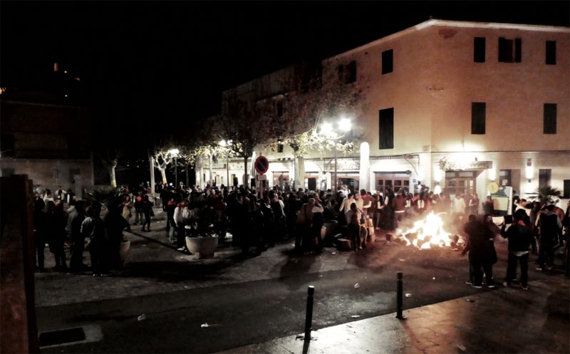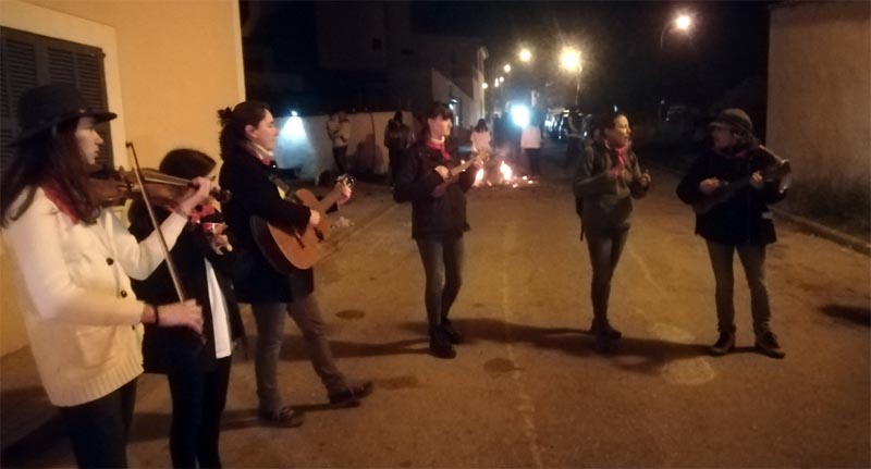 A la plaça de l’Orient hi hagué foguerons amb música amb Dj pels més “marxosos”. Mentre una colla de músics voltaren pels foguerons cantant les cançons populars de Sant Antoni. Dos maneres ben diferents de viure la festa.