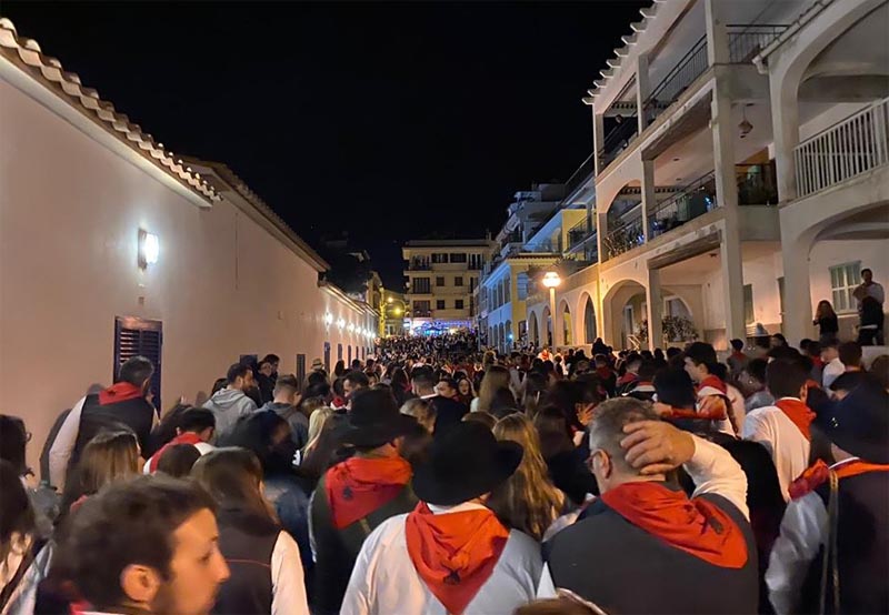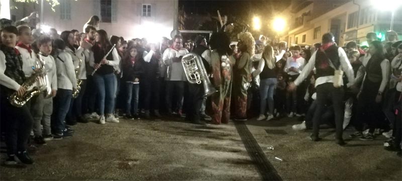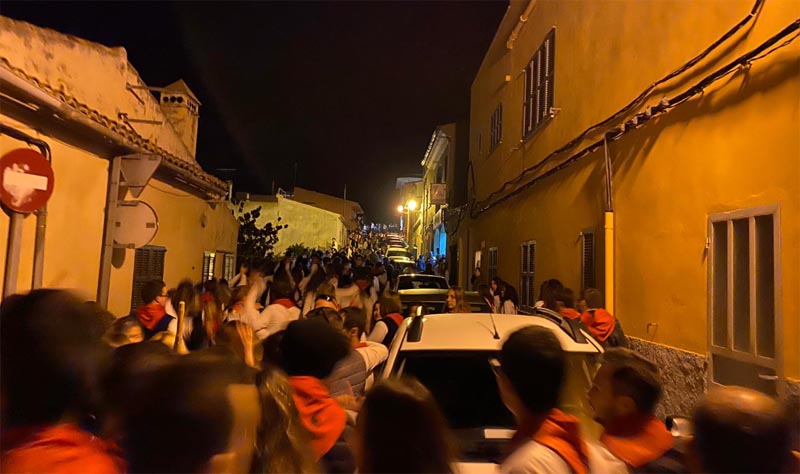 De camí a Vila Nova, just abans de fosquejar, tocà l’aturada a Can Patilla on dimonis i banda van fer de les seves, a un espai on no cabia una agulla. Sortits a Sa Creu, enfilaren cap el carrer del Mar. Si bé en aquest tram queda manco gent, encara el nombre de participants era molt nombrós.