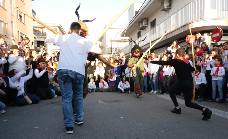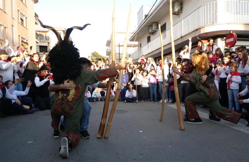 Al primer ball, com cada any, els santantoniers gabellins van desfermar la seva emoció. Ballant i cantant van acompanyar el dimoni fins la plaça de l’església on una gernació esperava el moment de la trobada dels dos dimonis i la desfeta de la creu de mata. Un moment únic, amb una participació massiva.