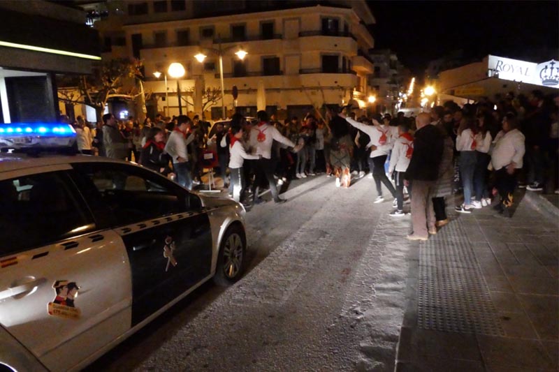 Arribats a la plaça de l’Orient la Banda tocà i els dimonis es llevaren las màscares i se preparà la parella que havia de fer la volta nocturna, que enguany va començar per Vila Roja i acabar per Vila Nova. L’inici del recorregut va ser, com també és habitual, al fogueró de la Tercera Edat.