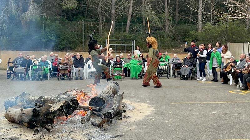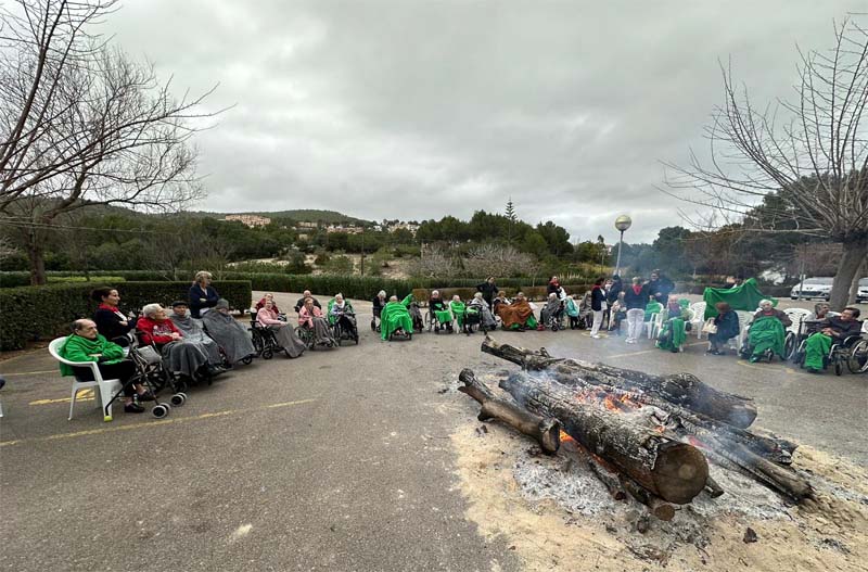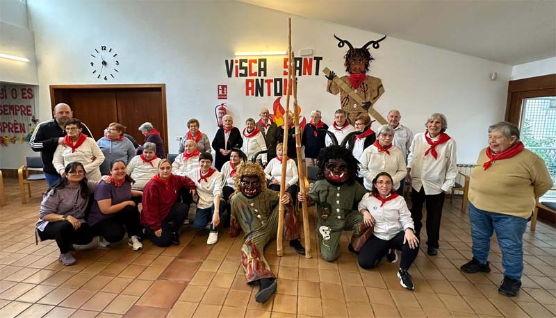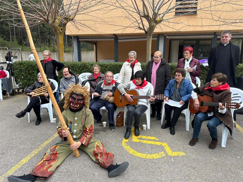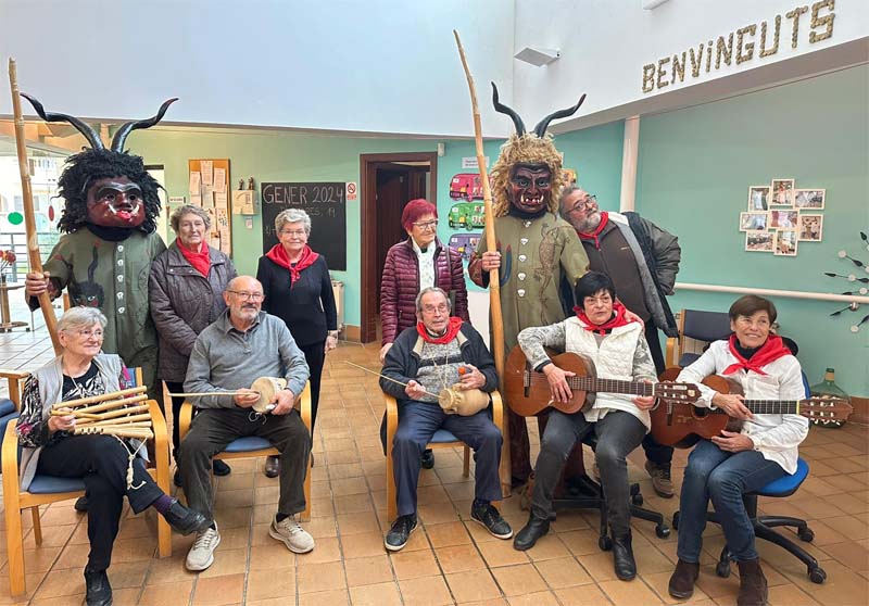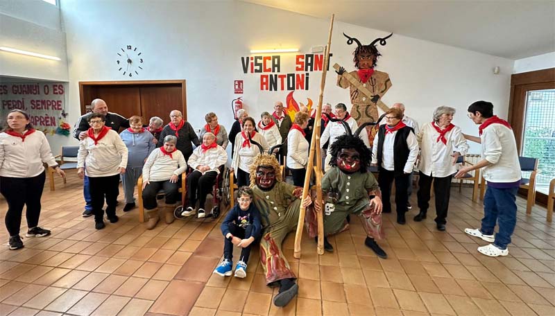 A la Residència el dimonis han ballat al voltant del fogueró encès al mig de l’aparcament. Un grup de sonadors i cantaires han acompanyat els dimonis cantant cançons típiques de Sant Antoni.