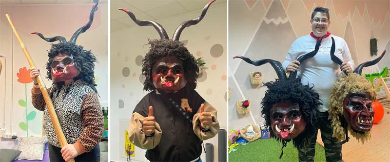 Un altre espai que ha rebut la visita dels dimonis de l’Obreria de Sant Antoni ha estat a RACÓ PETIT. Els nins i nines, i els seus pares i mares, han pogut conèixer als dimonis i ballar amb ells.