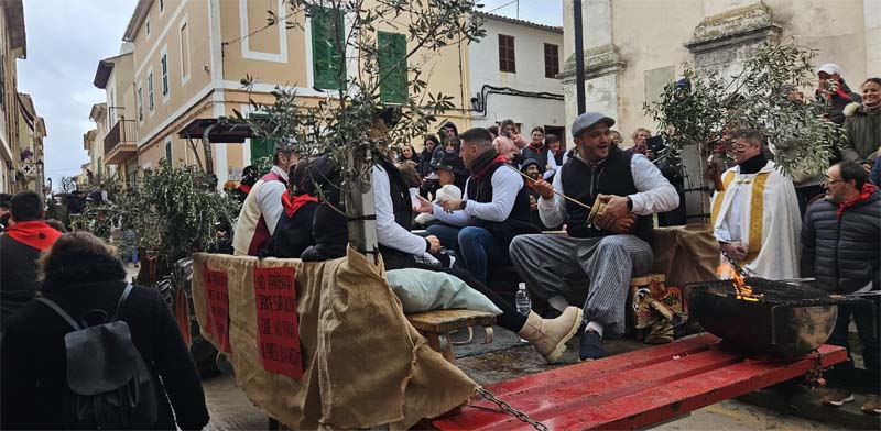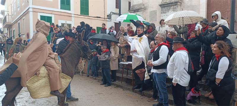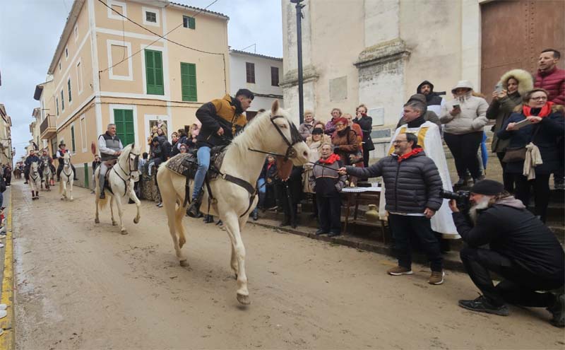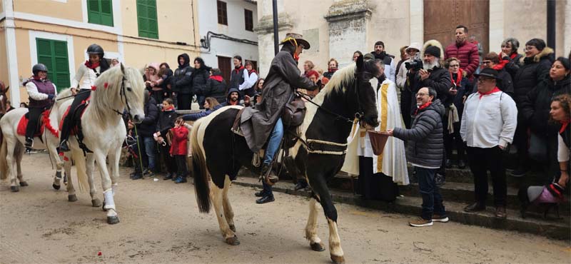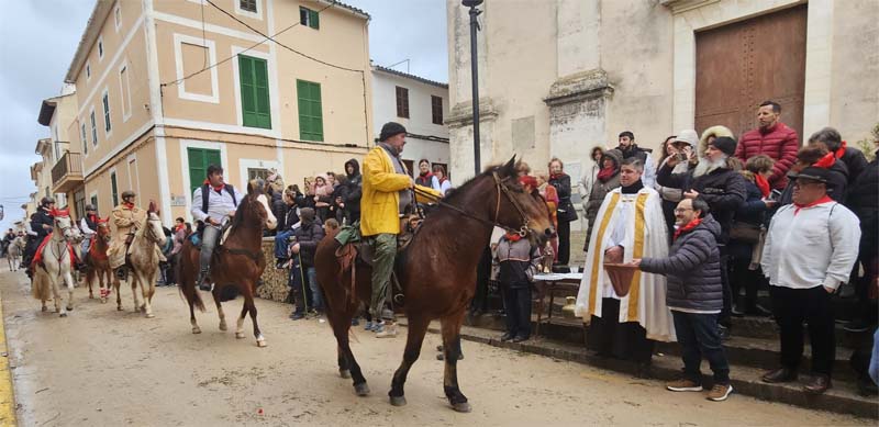Sota les escales, a peu de carrer, el capella Xisco Bernabeu, acompanyat per en Pere Orpí, beneí els animals (bàsicament cans i cusses). Devora se situaren les autoritats locals i membres de l’Obreria de Sant Antoni.