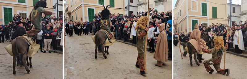 A la darrera volta, després del ball, els dimonis van descavalcar a Sant Antoni de l’ase i un dels dimonis pujà damunt.