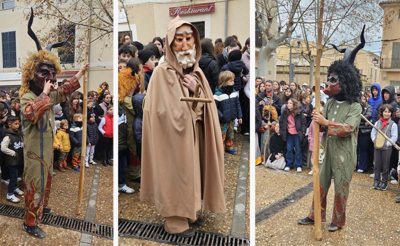 Després dels obrers, que obrien la comitiva amb l’estendard de l’Obreria, desfilaren Sant Antoni damunt l’ase, i els dimonis ballant les músiques interpretades per la Banda de Música.