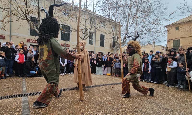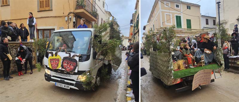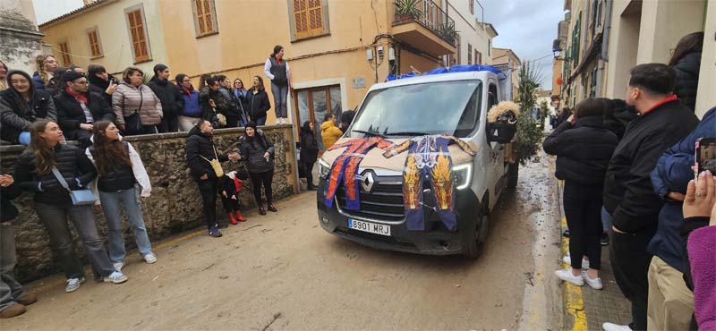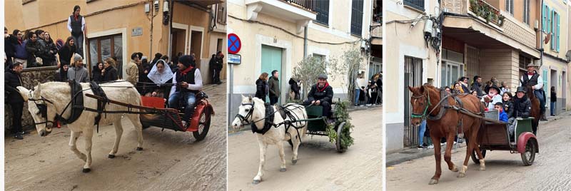 Després de la recollida dels obrers al carrer Ciutat (ca l’obrer Tomeu Melis), juntament amb la Banda de Música, la cavalcada sortí per a fer tres voltes a un recorregut establert que passa per davant la plaça de l’església de Sant Bartomeu.