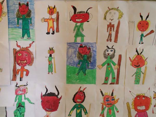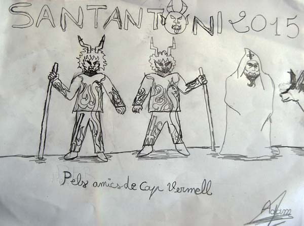 Les festes de Sant Antoni tenen una gran popularitat entre els més menuts. Dimonis, foguerons, corregudes,torrades, Sant Antoni… són elements del que els nins i nines gaudexen i sovint els plasmen en els seus dibuixos.