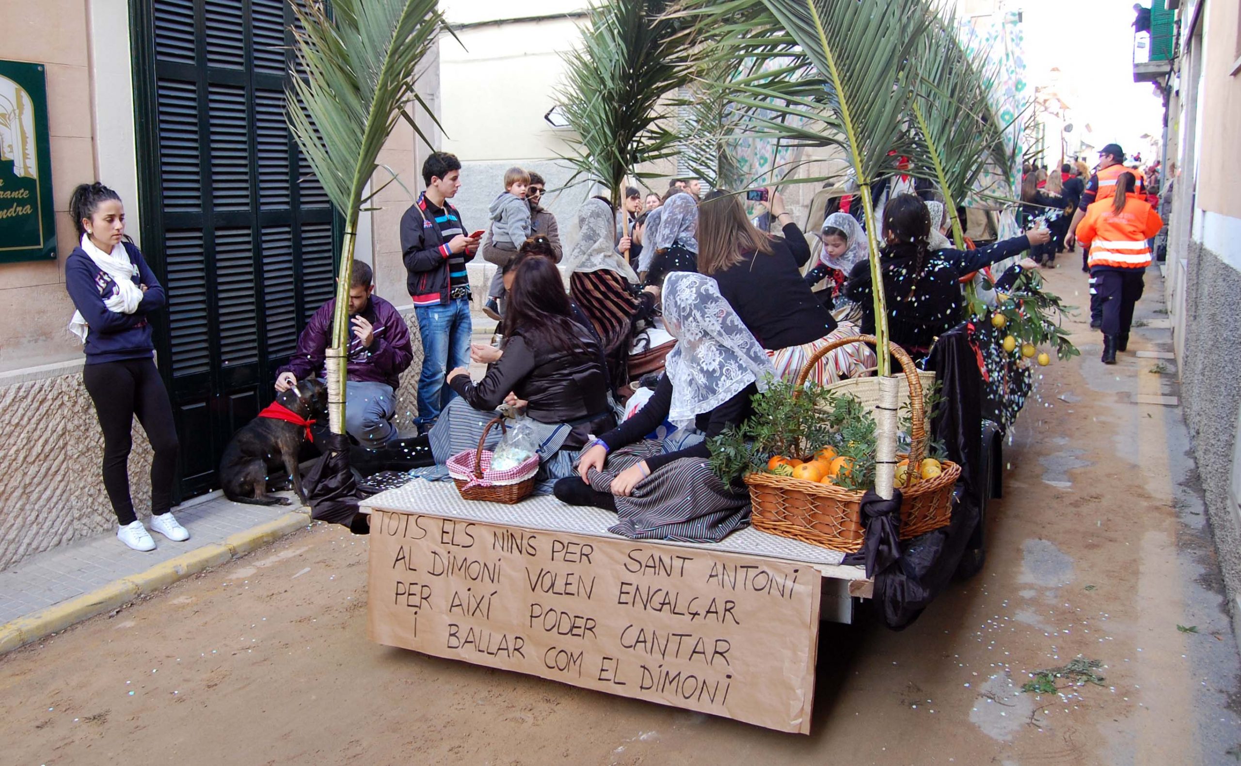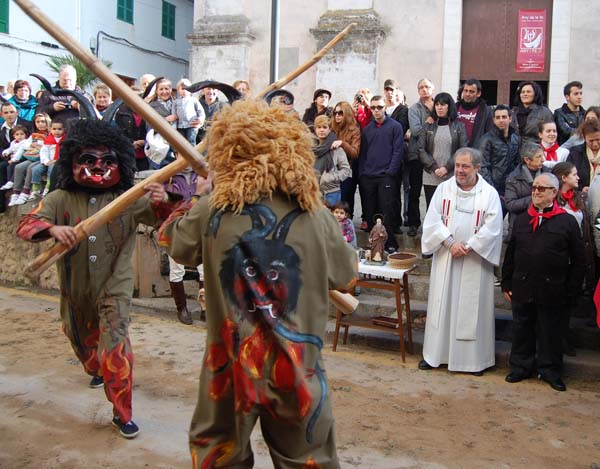 Tot va anar com una seda: molta gent, bon temps, carrosses, bísties i ambient santantonier cent per cent. El públic, com sol ser habitual, es va concentrar especialment davant l’església, a sa Creu i a la plaça de l’Orient, per assistir a una nova cavalcada. Aquesta no va presentar cap novetat, però tampoc no hi mancà res i, per tant, tot va discórrer a la perfecció.