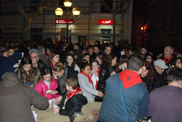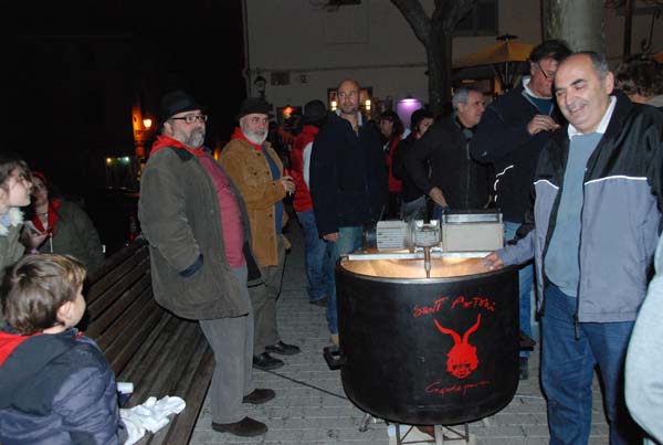 Es van repartir galetes amb forma de dimoni (també per a celíacs) i la comitiva va seguir altra vegada cap a la plaça de l’Orient, on hi havia preparat una deliciosa xocolata calenta i coques de la pastisseria Tolan.