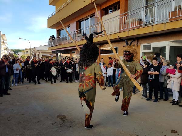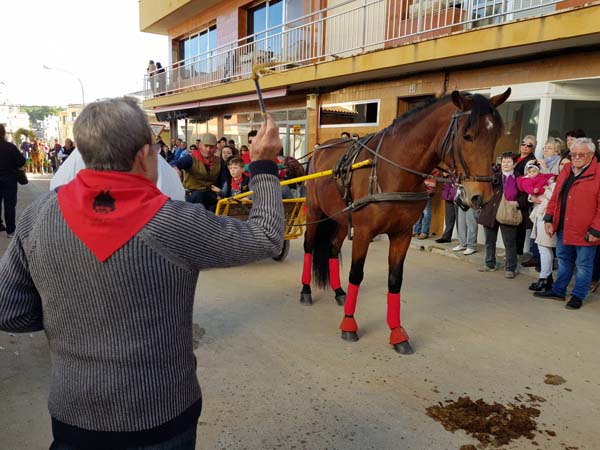 Els primers en passar foren els dimonis i un Sant Antoni que resistia les embestides burlesques dels malignes, assegut sobre l’ase sofrit i patidor, que anava estirat per una persona també pacient. Els assistents contemplaven drets a banda i banda del carrer la desfilada de les carrosses, algunes d’elles decorades amb gloses dedicades al Sant i a la festa. Desfilaren els cavalls amb alguna que altre cabriola i les carrosses. Tal vegada fou massa arriscat l’apropament dels cavalls al públic, o a la inversa, perquè tot i ser uns animals pacífics, les seves traces i els seus moviments fan que hom puguir pensar en el perill que comporten, un fet que també s’hauria de plantejar.