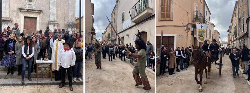 :n arribar a les escales de la plaça de l’església Mn. Xisco Bernabeu va beneir els animals participants en la cavalcada i els animals domèstics (majoritàriament cans) que els seus propietaris aproparen. L’Obreria repartí un calendari del 2026 amb la imatge de Sant Antoni als participants.