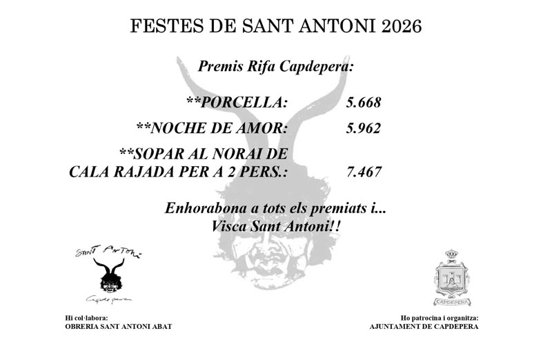 Dissabte, 17 de gener, és el dia de Sant Antoni. Des de les 14:30 hores comença el programa que marca la festivitat en honor del sant amb la concentració de la cavalcada al carrer Roses per pujar pel carrer Ciutat cap a la plaça de l’església.