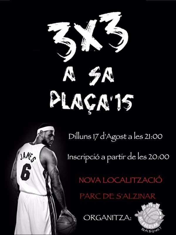 El Club Atlètic Escolar de Bàsquet informa que, juntament amb la regidoria de festes, ha decidit traslladar el bàsquet 3×3, anunciat al programa de les festes de Sant Bartomeu, de la plaça des Sitjar (on s’ha fet en altres edicions) al parc de s’Alzinar.