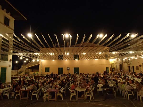 El sopar a la fresca va arreplegar més de 500 comensals a la plaça des Sitjar. Grups d’amics, pandilles, veïnats… un sopar per compatir i gaudir tots junts. Puntualment, a les 9, el batle Rafel Fernández va donar el sus! No faltaren tota casta de plats, cadascun més bo i saborós, tant de salats com de dolços. Tota una festa gastronòmica.