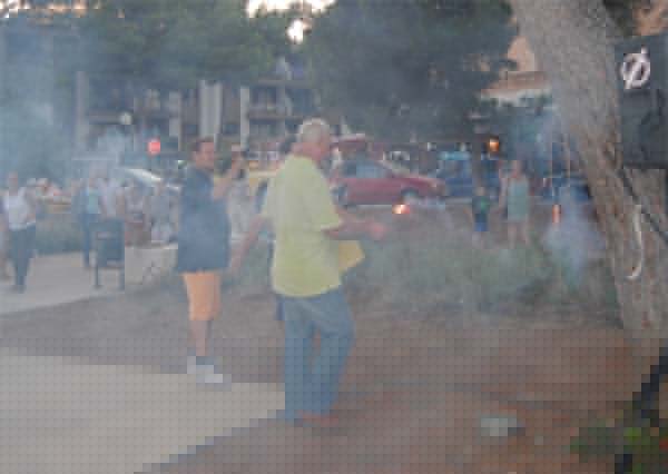 Encesa de la traca, sota l’atenta mirada del reporter de guàrdia de Cap Vermell. També podeu escoltar la traca al vídeo, rere el pregó.